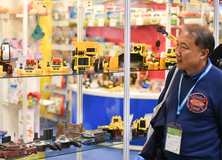 1月11日,观展者欣赏展品。当日,由香港贸易发展局举办的第42届香港玩具展在香港会议展览中心开幕,共吸引超过2030家公司参展。为期四天的第42届香港玩具展设有新世代智能玩具、大童世界、运动世界及飞行玩具示范等展区。(来源: 经济参考报)