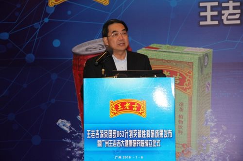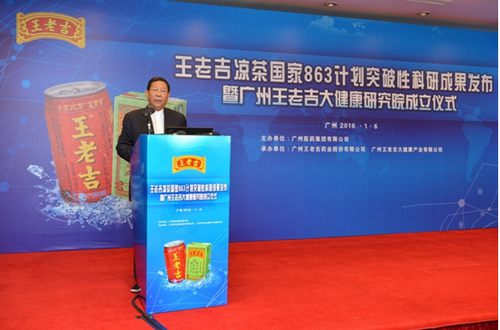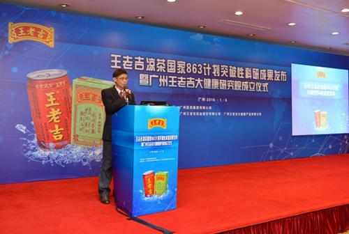 图:王老吉研究院院长郑荣波先生发布吉凉茶国家863计划突破性科研成果