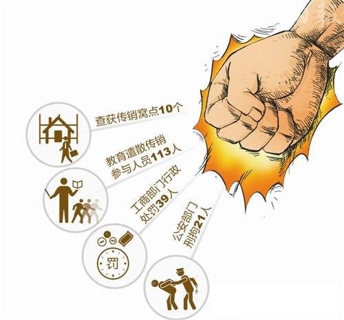 截至目前,执法行动已查获传销窝点10个,教育遣散传销参与人员113人,工商部门行政处罚39人,公安部门刑拘21人,涉及“旗舰网络销售”、“团队式创业”等组织,网络传销犯罪案件正在调查中。