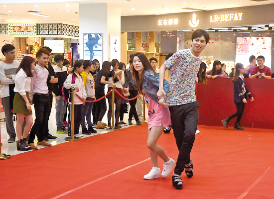东莞一商场举办男女互换体验大赛 让男士穿高跟鞋体验女士生活