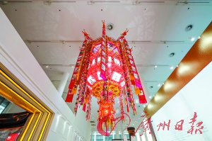 千角灯传承人张树祺介绍说,新灯高5米多,宽近4米,相对于前两盏千角灯,新灯除了尺寸更大,在外观上也与其余存世的两盏千角灯不同。(记者 龙成柳)(来源:广州日报)
