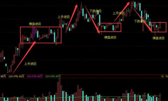我们随便翻开一只股票,可以发现,从波段的角度来看,横盘波段,下跌波段,上升波段,任何一只股票当下一定处于这三个波段之中,要么下跌,要么横盘,要么上升。