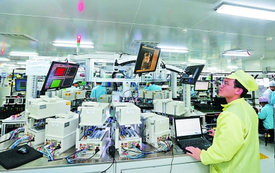 创新是引领发展的第一动力。位于东莞的广东欧珀移动通信有限公司,在采用智能设备后,一个生产车间将节省400人。智能化设备让生产效率大幅提高,也让工人脱离了高危物品作业岗位。近年来,欧珀公司加大科研创新投入,研发团队有4000人,占公司总人数的五分之一,而这正是东莞智能制造的一个缩影。2015年,全球智能手机出货量12.93亿台,东莞市以2.42亿台占全球出货量的近两成。