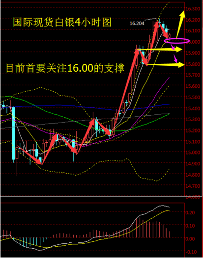 策略二:银价下方首见16.00短多一次,止损0.1,目标16.15-16.25;