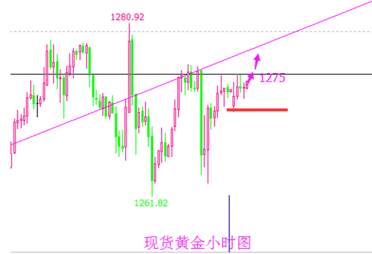 现货黄金早间可参考策略:黄金现价1272-73多单直接进场,损1268,目标看1278-80;上方首次触及1284一线可空!