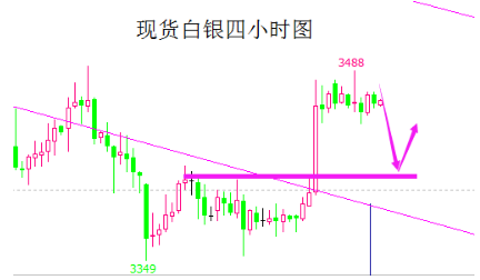 现货白银可参考策略:白银价格3480一线空,损35个点,目标看3440-30止盈破位持有!(撰稿人:萧熙宇)