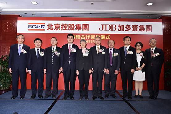 (加多宝与北控集团双方高管合影,右起第五位为加多宝董事长陈鸿道)
