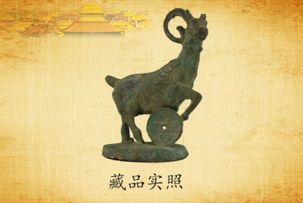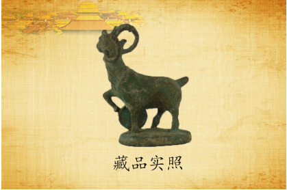 此藏品山羊呈昂首阔步状向右前方看去,双角向后略弯至肩部,前右脚抬起踩在一枚钱币之上,背上有钱币若干,羊尾向上,身下有一石块,底部镂刻。山羊表情逼真生动,显其温顺性情。置钱币于山羊之上,有招财开泰之意,寓意吉祥。整体造型古朴端庄,做工精细,布局匀称,和谐统一,显得稳重而古雅,是难得的精品,收藏和鉴赏价值颇高。