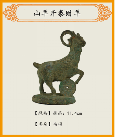 西汉大儒董仲舒有云:“羊,祥也,故吉礼用之。”在成语和许多民间艺术中,也多以羊代表吉祥。在各类的吉祥礼俗中,羊是必备的祭祀天地的祭品,因为古人认为羊能代替人们传达吉祥如意之意,所以从万年前就有羊作为祥瑞的记载。此外,古代中国甲骨文中“美”字,即呈头顶大角之羊形,是美好的象征,可见人们对羊极为钟爱。以山羊为形制成的开泰财羊,寓意美好,收藏置于家中,有招财之喜,更添吉祥。