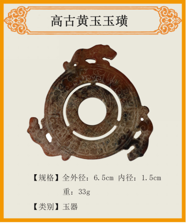 高古玉通常指汉代及汉代以前的玉石器,时间约在距今2000年至8000年。新石器期间的玉器用料多为就近取材,主要用于祭祀,有着神秘的宗教色彩;商周至战汉期间的玉器多为帝王、皇家及达官贵人使用,玉料以和田玉为主,制造技术和艺术气息都笼罩着威严氛围。由于高古玉经历了神玉、王玉以及礼制用玉等时期,并与当时的社会环境、文明形态有着紧密联系,具有深厚的文化底蕴和艺术价值,目前已成为国家重点保护文物。