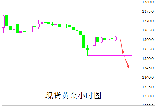 现货黄金可参考策略:黄金价格1360一线空单进场,损1368,目标看1352-48破位持有,若欧盘下跌,可推损持有至非农,目标看至1338-32!
