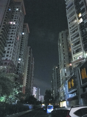第一次走访时间为工作日晚九时左右。该小区开灯率整体上大约为一成左右。其中不少是整栋楼无一亮灯,即使有开灯的建筑,也是一整栋楼仅有四个窗户发出灯光。