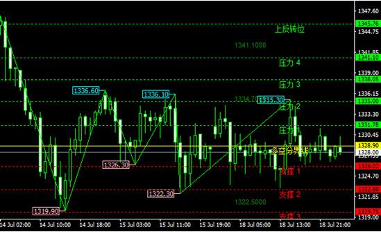 现货黄金可参考策略:现价1329-30一线空,止损1335.5,目标1324-1322一带止盈即可!下方首次触及1320一线可轻仓短多!