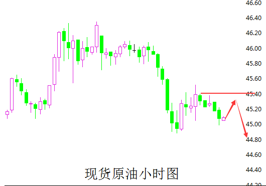 现货原油可参考策略:油价45.4-5一线进空,损46,目标看44.8-44.5破位持有即可!(撰稿人:萧熙宇)
