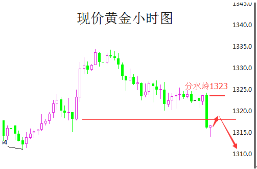 现货黄金可参考策略:黄金价格1318空,损1323,目标看1313-10一线破位持有,下方首次触及1306-05一线可多!