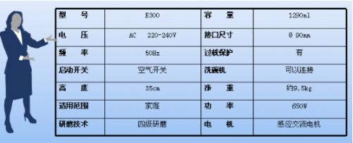 另外E300有3C认证、安全气动开关、温控保护、过载保护、智能正反转、分体式防溅罩、快速安装防漏技术这7大安全保障。从源头开始保障每一个消费者的安全,让每一位选用杰美E300的消费者都用的放心、用的舒心。