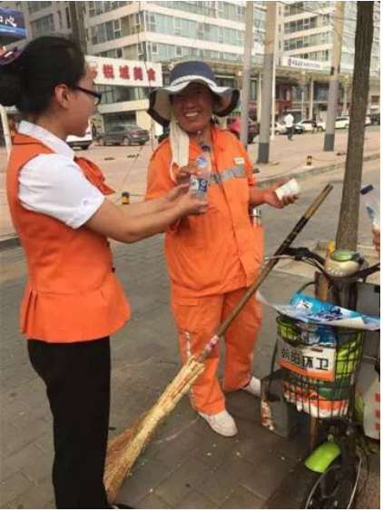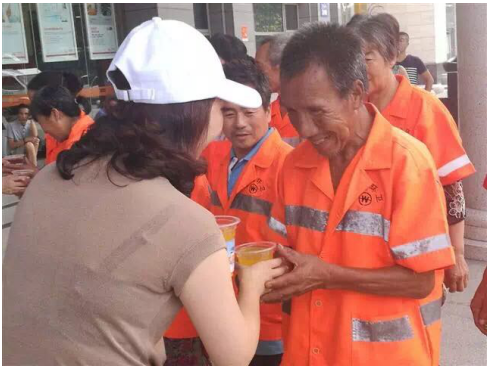 平安银行的员工还纷纷走上街头,为高温酷暑下坚守岗位的环卫工人、出租车司机、执勤民警、物业保安、公交工作人员、市政抢修工、快递小哥送上一份清凉,献上一份爱心,给他们递上一杯水,跟他们道一声辛苦,感谢他们默默的付出,让我们的城市更美丽、生活更美好。