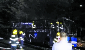 消防车赶到事发现场,大客车几乎烧成了一个火球。