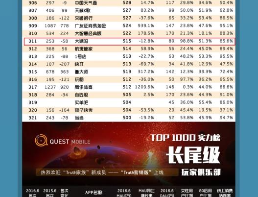 国内知名的第三方研究机构发布的《2016年中APP实力榜》数据显示,2016年6月份,经期管理工具大姨吗MAU同比下跌12.8%,MAU高达515万,DAU高达80万。