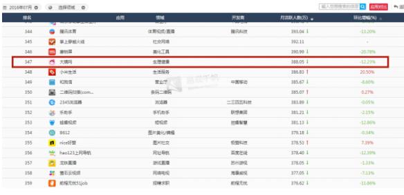 国内知名的第三方研究机构易观千帆最新的7月份《移动应用数据排名》数据显示,2016年7月,经期管理工具大姨吗MAU达388.05万,相比6月份下跌12.23%。