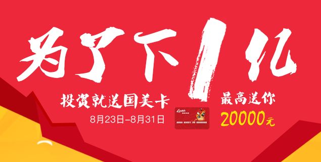 8月23~31日,凡在国美华人金融平台投资6个月以上的理财产品的会员,皆可根据相应的投资额获得60、180、400、800、2000、4400、9000、20000元不等的国美在线购物卡。无论是从奖品设置还是含金量上来看,此次国美华人金融的“亿万收益、财富共享”活动当之无愧属华金史上力度最大回馈,没有之一!如此看来,国美华人金融的投资者在尽享一份高达10%以上的丰厚投资收益同时,还可自“亿万收益、财富共享”活动赢得属于你的那一份幸运大奖!