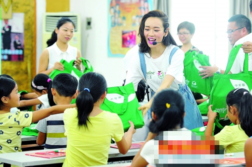 此次杨思琦是以“静新绿书包行动”爱心大使的身份前来,她给孩子们上了一堂关于“爱是什么”的公开课。在课堂上,杨思琦问孩子们:喜欢读什么书?又有怎样的梦想?