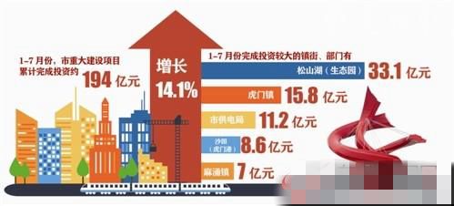会议通报称,1-7月份完成投资较大的镇街、部门有松山湖(生态园)、虎门镇、市供电局、沙田(虎门港)、麻涌镇,分别完成投资33.1亿元、15.8亿元、11.2亿元、8.6亿元、7亿元。(来源:东莞时间网)