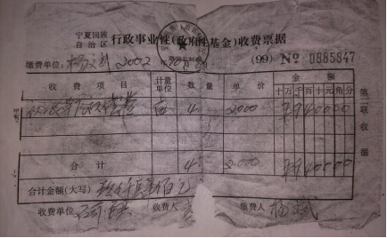 杨兵当年缴纳土地费用的凭证