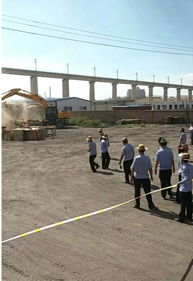 在没有下发任何公告的情况下,2016年8月31日13点30分,二次强拆突然而至。宁东镇镇长张志宁、副镇长铁柱、公安分局局长侯晓亮、宁东管委会执法局局长唐华、执法队队长王自祥、宁东镇马跑泉村村干部等人带队率公安局、执法队及特警几十余人和三十余名不明身份的社会人员强行将金水宾馆的后院围墙及平房拆除。现场还有十多辆政府工作车辆,包括一辆特警车、两辆警车、两辆执法车和四台大型挖掘机。