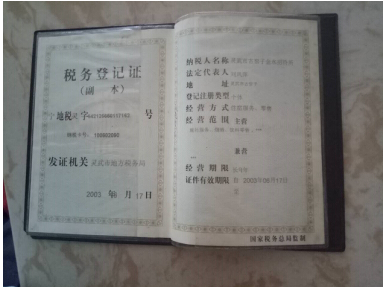 金水宾馆税务登记证