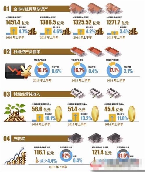 市农业局数据显示,今年上半年,全市村组两级总资产1451.4亿元,比上年同期增长4.7%。净资产1217.9亿元,增长5.5%。