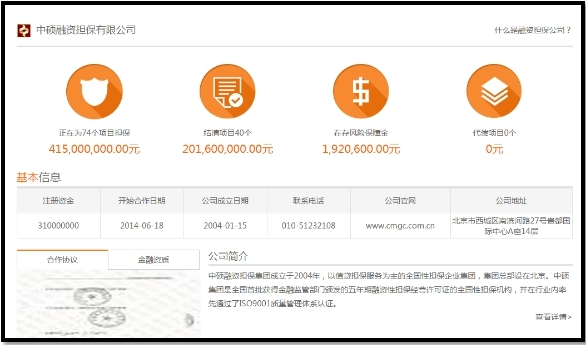 通过对理财范合作伙伴—中硕融资担保有限公司的调查发现,正在为理财范提供4亿元在贷项目余额担保的该合作担保机构存在长期且严重的诚信问题。