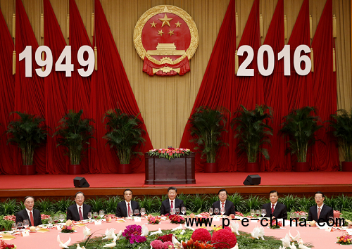 李克强说,六十七年来特别是改革开放以来,中国共产党带领全国各族人民百折不挠,砥砺奋进,伟大祖国实现了从积贫积弱到世界第二大经济体的转变,中华民族实现了从饱受欺凌到迈向伟大复兴的转变,人民生活实现了从缺衣少食到推进全面建成小康社会的转变。并强调,要以更大力度全面深化改革,不断破除束缚发展、不利民生、妨碍公平的制度瓶颈;坚持扩大开放,推进“一带一路”建设,促进国际产能合作。要坚持“干”字为要,主动作为,在破解各种难题中不断开拓新局面。