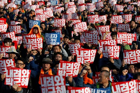 数十万韩国民众举行大规模集会要求朴槿惠下台