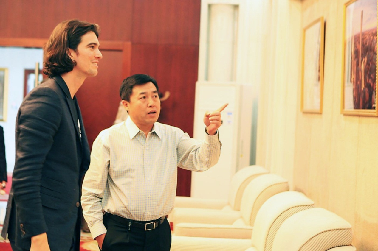 李明向亚当•纽曼(Adam Neumann)介绍远洋集团的重点项目