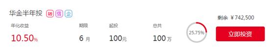 随着国美集团、恒大集团、平安集团等实体企业的加入,互联网金融产品成为新的理财热点。近期,国美控股集团金融战略平台华人金控旗下的P2P平台国美华人金融推出了一款颇为诱人的理财产品——华金半年投。年化收益率为10.5%,投资期限为半年,半年后可得2625元收益。