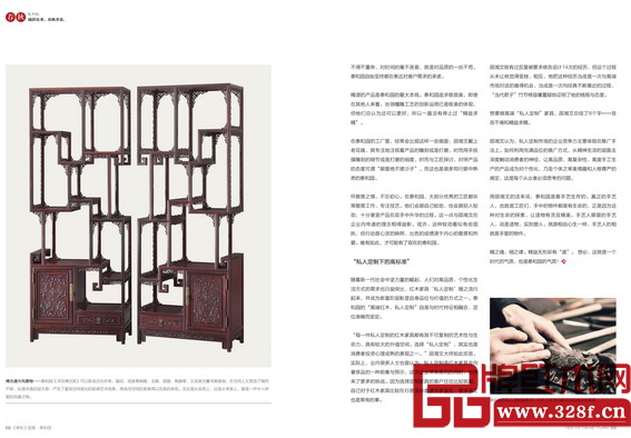随着新一代社会中坚力量的崛起,人们对高品质、个性化生活方式的需求也日益突出,红木家具‘私人定制’随之流行起来,并成为新富阶层彰显自身品位与价值的方式之一。泰和园的“高端红木,私人定制”自是与时代特征相融合,定位准确而坚定。