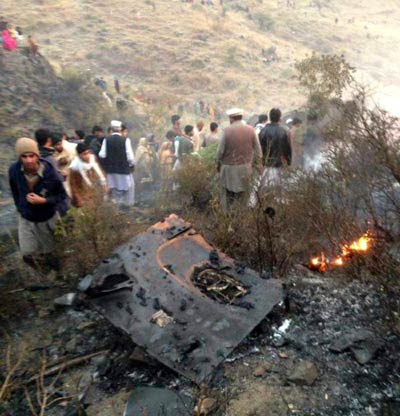 12月7日,在巴基斯坦赫韦利扬,当地居民聚集在失事客机附近。