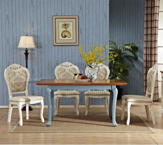 饮食男女,对美食的诱惑有多少抗拒力呢?散发着大自然原木气质的餐桌表面,天蓝色的底座微微舒张着流畅而又婉转的身姿,清新的印花软垫餐椅亲密的围绕着,仿佛在蓝色的梦幻国度里将家的脉脉温情注入了新鲜活力,用餐时刻一点也不会显得枯燥和无聊。而其最妙的想法是如远洋航行的冒险,经典的长方形台面将优雅带入可活动的组合当中,推拉之间,大小随心而变,客人来了也不用担心餐桌小的问题。