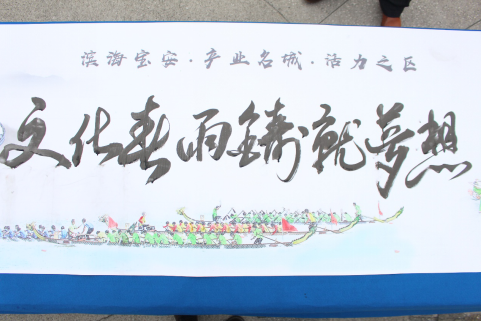 其中,在推广日活动主会场,设置了“文化春雨十米画卷”互动区域,其中“文化春雨十米画卷”展示了宝安区各街道的文化建筑特色与文化春雨三支队伍的服务场景。吸引了许多热心市民拿起画笔为画卷增添色彩,绘出对滨海宝安的美好畅想。最后由宝安区文体旅游局副局长童尽一为画卷题字“文化春雨,铸就梦想”,升华了本次活动主题。