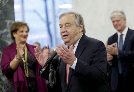 联合国第九任秘书长安东尼奥.古特雷斯上任