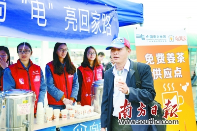 除了东莞东站以外,东莞供电局的志愿者分别在东莞火车站、东莞汽车总站、东莞汽车北站、樟木头镇振通汽车客运站、虎门汽车客运站、厚街城际快充站等各大交通枢纽都开展了“‘电莞家’‘电’亮回家路”志愿服务。一杯姜茶,暖人更暖心。