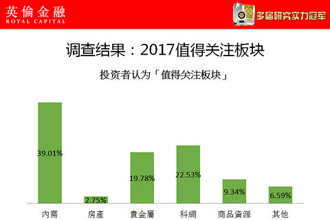 此前,英伦金融联合广东广播电视台财经节目中心,发起《2017年投资的市场环境会如何?》的市场调查,其中问题包括备受投资者关注的“2017年最值得关注的投资板块”。此次调查活动吸引了逾3000位投资者参与,调查结果具有一定的标杆性。从调查得到的数据可以看出,认为内需最值得关注的投资者最多,占39.01%,此外网络科技股和贵金属也备受期待。特别是黄金,正在逐步实现投资者们的期待,在过去三个星期里金价上涨近80美元,这波行情给投资者带来每周逾3倍的回报,英伦金融早在圣诞节就提示金价会大升,不少投资者紧握行情赚到笑。