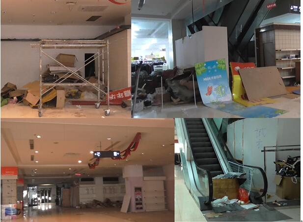 奥斯卡商场内通往二层的电梯全部封堵,尚有未完工的装修工程