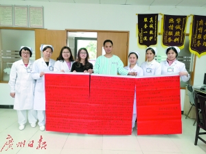 东莞市第三人民医院高压氧科护士长刘瑾,做了多年护士,收到过不少患者写来的感谢信,收到的锦旗都不少。不过,像李先生那样写满三张大红纸的感谢信,她是第一回收到。