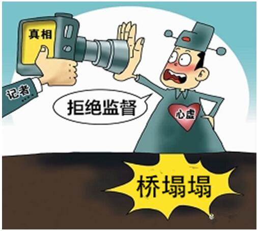 事实证明,很多豆腐渣工程出现的原因都是出在监管单位和监管人员监督不力、相互勾结、共同获取不正当利润造成的。在被查处的党政官员中,差不多每人都有一笔“说不清”来源的巨额财产,少则数十万,多则数百万上千亿元。这些主管官员滥用职权、以权谋私。一个工程项目,不论造价多少,想让谁做就给谁做,想打击谁就打击谁!