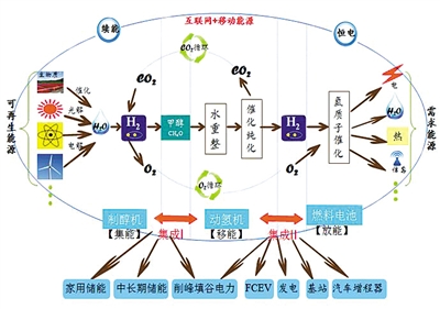 1多种能源变成甲醇,甲醇变成人们需要的能源。