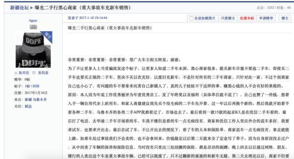 2017年1月,刚拿到年终奖的阿华跟家人商量准备购置一辆自用的城市代步车,因为觉得二手车比新车便宜,阿华说服了家人先买辆二手车开,一年之后再换新车。阿华跑遍了乌鲁木齐的各大二手车市场,还尝试了众多二手车电商平台,最终在优信二手车上选中了一款15年的起亚k3,这款车省油空间大,是同级别合资车中性能最好的一款车。阿华说,虽然这车是在优信二手车平台上看到的,但实际看车地点是华凌二手车市场,车辆属于旺角二手车车行的。看车过程中,优信二手车和车行的工作人员反复向阿华表示“这辆车车况非常好,拿走就能上路”,并承诺说“如果车出过事故我们肯定不会卖的”。