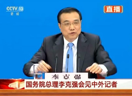 3月15日上午,国务院总理李克强在人民大会堂三楼金色大厅会见采访十二届全国人大五次会议的中外记者并回答记者提出的问题。