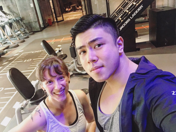 Kison在健身会所教外国健身客户